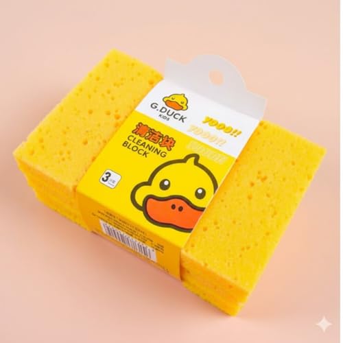 - Vibrant G.DUCK Signature Design: Featuring the iconic and cheerful G.DUCK Kids branding, these bright yellow sponges add a fun, playful touch to your cleaning routine. The high-visibility color makes them easy to find in crowded cabinets.