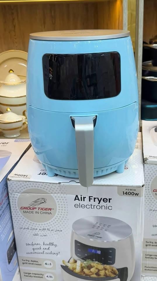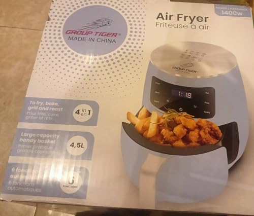 GROUP TIGER - Air Fryer 4.5L, 1400W, 4 in 1 Multi-Function to Fry Bake Grill and Roast, 6 Functions, Blue