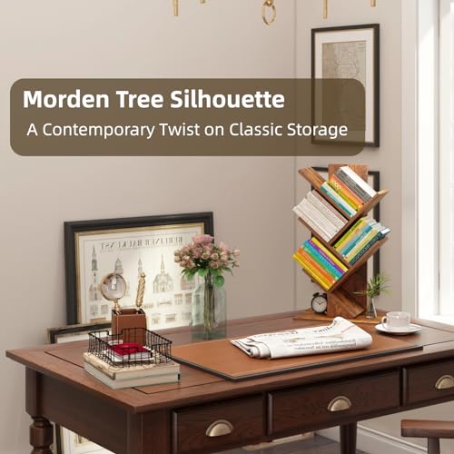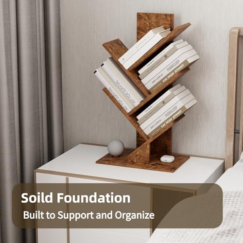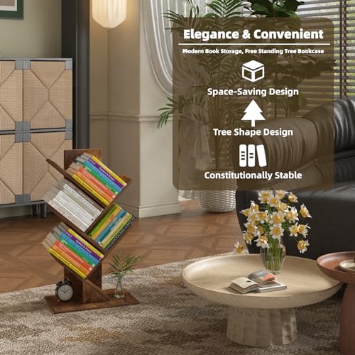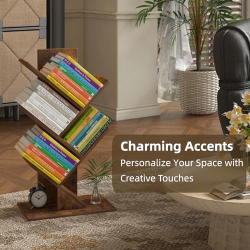 growfessor - خزانة كتب بتصميم شجرة بلون بني ريفي من 4 طبقات جروفيسور موفرة للمساحة رف منظم عصري للمكتب المنزلي وغرفة المعيشة النوم تخزين أنيق ومتعدد الاستخدامات تصميم قوي وآمن خشب