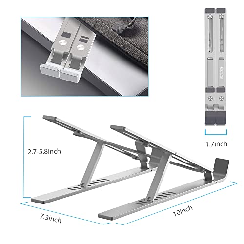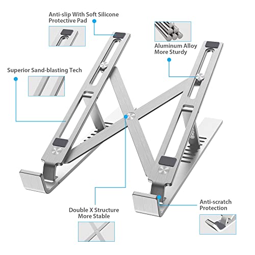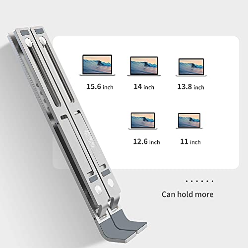 - HIGH-QUALITY ALUMINUM ALLOY LAPTOP STAND: The computer stand is composed of high-quality aluminum alloy, which is both sturdy and stable. This laptop riser can support up to 16 kg without wobbling. This laptop holder has excellent anti-rust qualities and a long service life. Adjustable laptop stand is better than all laptop stands because it is suitable for putting in computer bag. Avoid any scratches to your laptop by using this laptop stand adjustable height