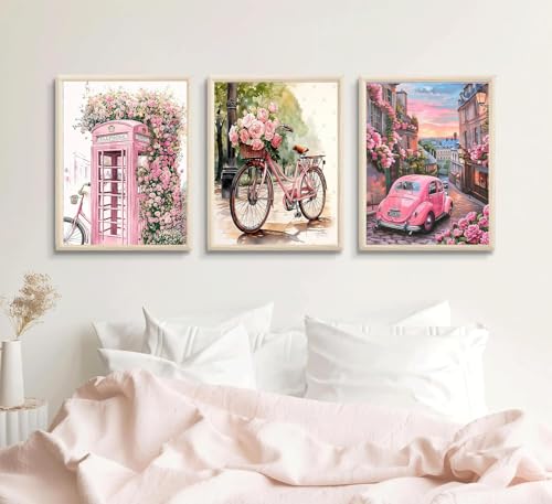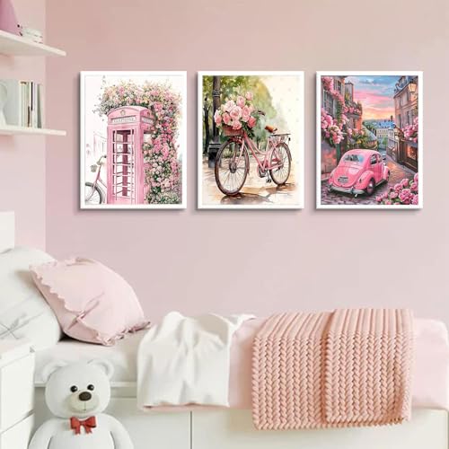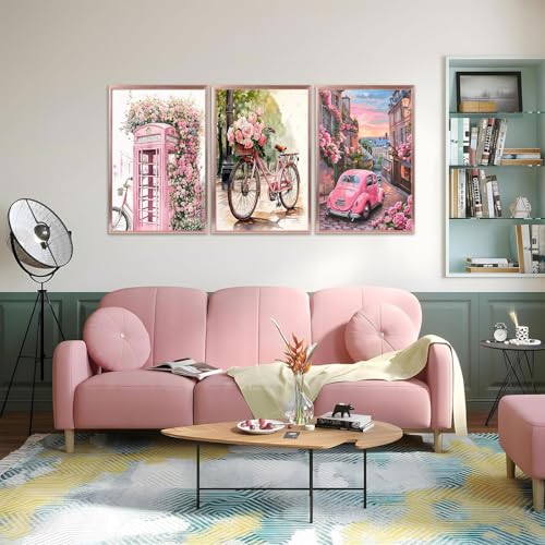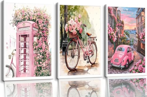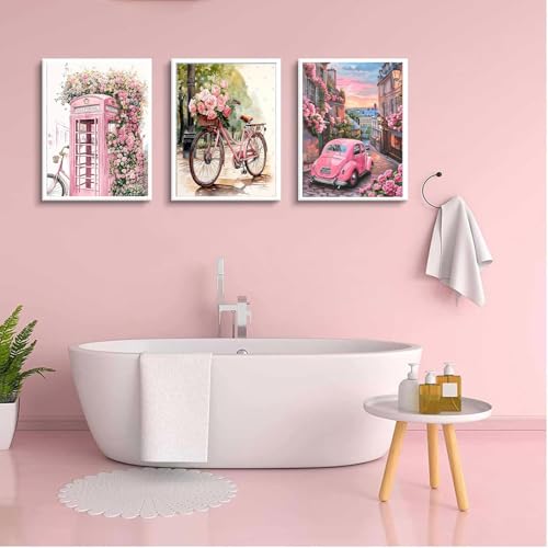 GSJMWD - لوحة فنية جدارية من القماش، ملصقات فنية عصرية باللون الوردي، ديكور حائط عالي الجودة بتصميم ريترو عصري لغرفة الفتيات والحمام وغرفة المعيشة وغرفة النوم وديكور المنزل، 30 × 40 سم، بدون إطار من GSJMWD