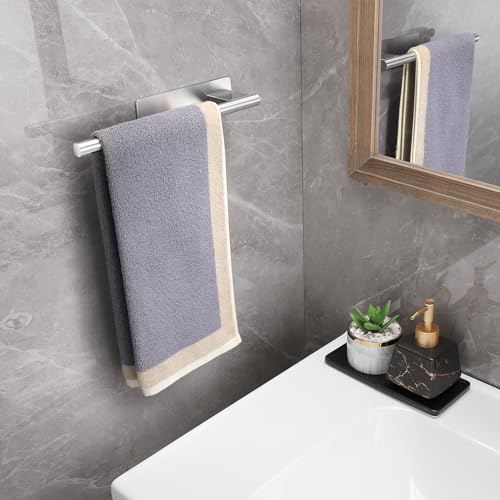 Gsocel - Self-Adhesive Towel Holder, No Drilling, Towel Holder, 304 Stainless Steel Towel Rail for Gluing for Bathroom and Kitchen, 28 cm, Silver