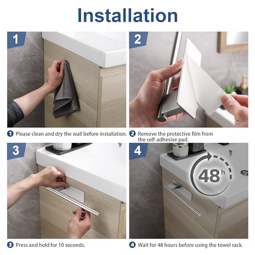 - No drilling: the towel holder for sticking is quick and easy to install. Simply peel off the protective film on the back, stick it to the wall and press it for a few seconds, wait 24 hours and then you can hang your towels