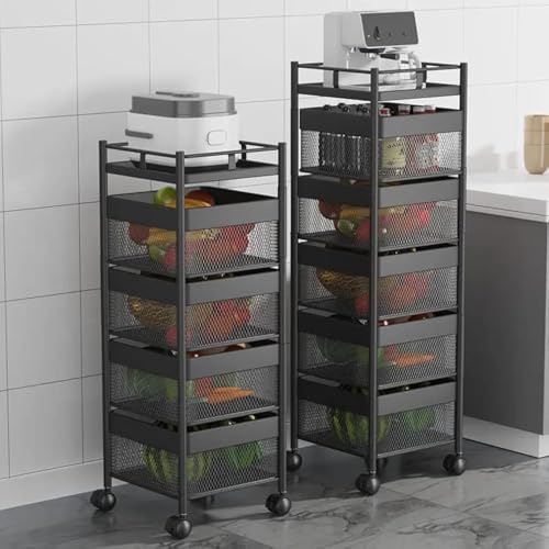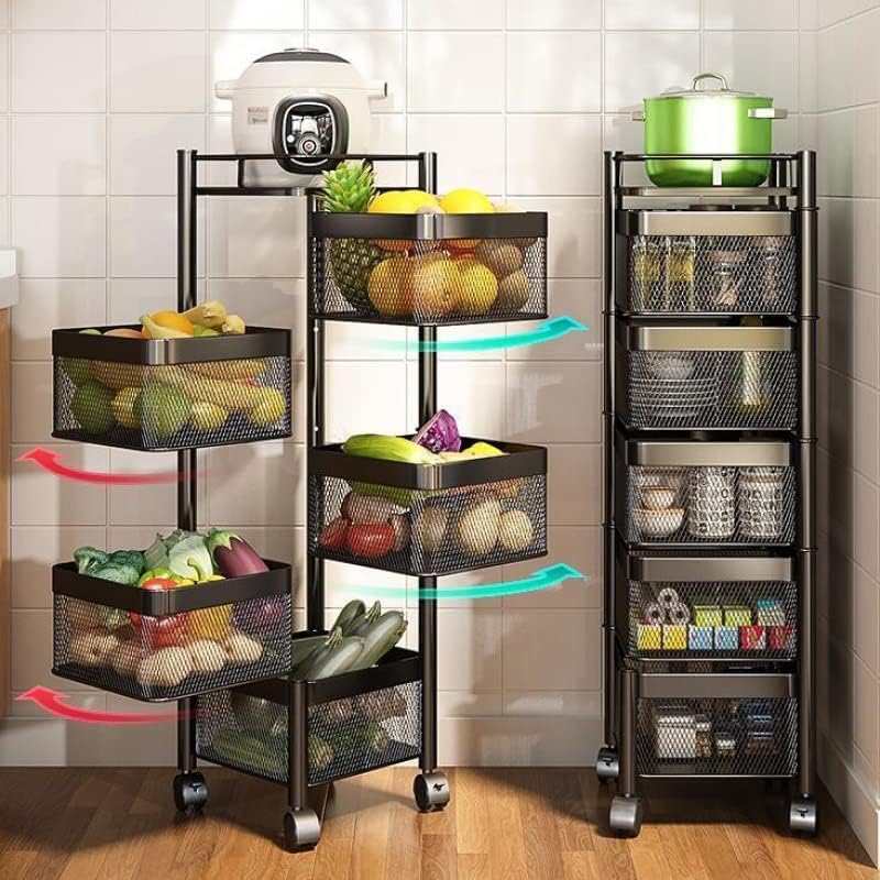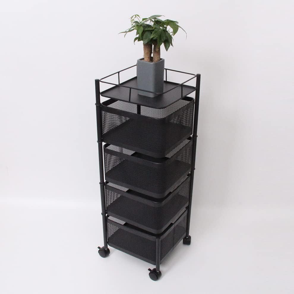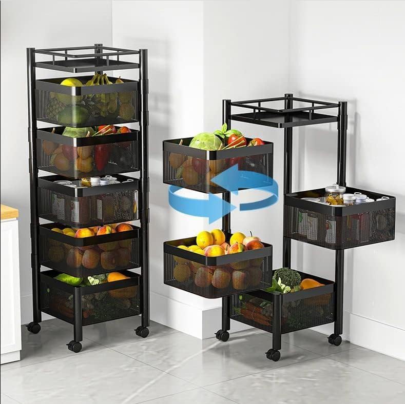 Spaceshoop - GStorm Thickened Metal Kitchen Vegetable Basket Multi-layered Rotatable Wheels Storage and Organizer Square Rack For Multi-Purpose (4 Racks)
