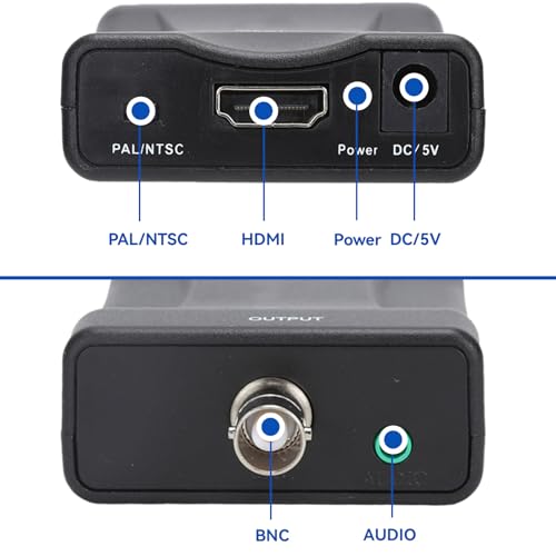 - استخدامات واسعة النطاق: يتيح لك محول HDMI إلى bnc مشاهدة مقاطع فيديو واجهة الوسائط المتعددة عالية الدقة على أجهزة التلفزيون العادية ومسجلات VHS ومسجلات DVD، ويمكنه استقبال إشارات BNC (دقة قياسية 480i، 576i)، ويدعم تنسيقين مختلفين NTSC/PAL.