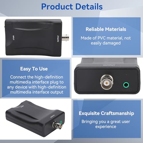 - تصميم عملي متين: يمكن لمحول الإشارة عالي الدقة للوسائط المتعددة - بي إن سي تحويل الإشارة الرقمية لواجهة الوسائط المتعددة عالية الدقة إلى إشارة فيديو مركبة بي ان سي وإشارة صوت ستيريو 3.5 ملم. يوفر تجربة مستخدم جيدة.