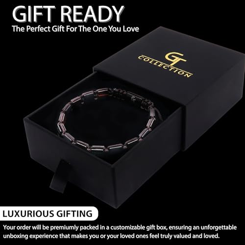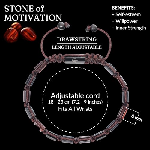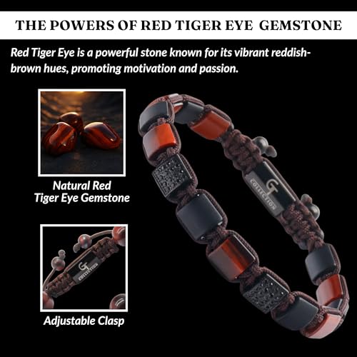 GT collection - GT collection Flat Beaded Men Bracelet – Premium Tiger Eye Red and Black Bracelets for Men – 100% Natural & Adjustable Bracelet for Men – Perfect Gemstone Men’s Bracelet