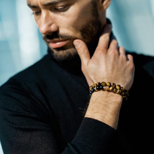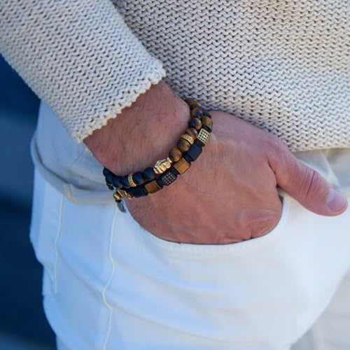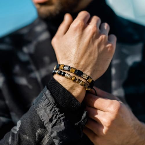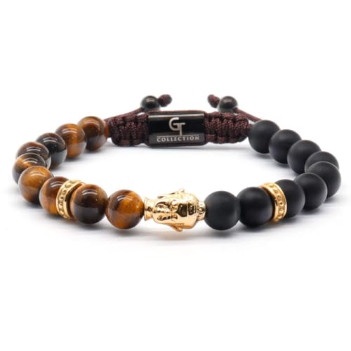 GT collection - GT collection Zen Bead Bracelet – 100% Natural Stainless Steel Wrapped with Stone - Adjustable Beaded Bracelet for Men’s