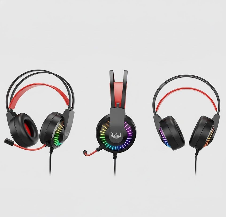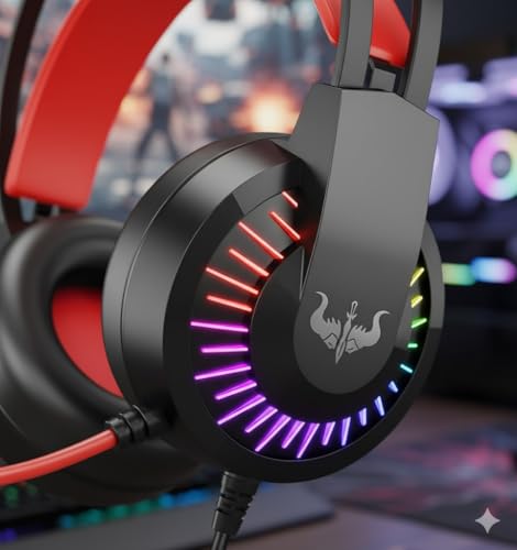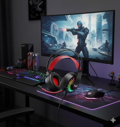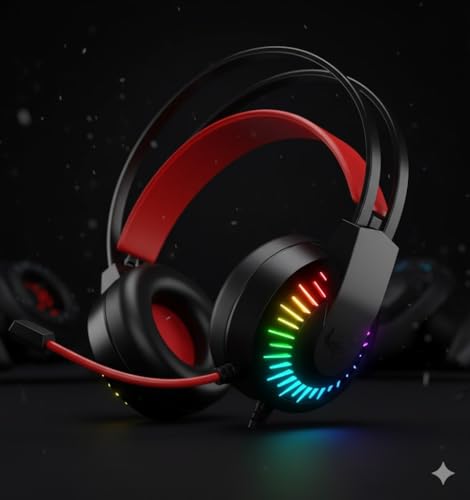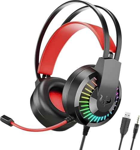 Generic - هيدفون ألعاب سلكية - بصوت ستيريو عالي الدقة وإضاءة RGB – ميكروفون دوار 120° – مقاس 40 ملم – كابل 2 متر – متوافقة مع جاك 3.5 ملم وUSB - موديل GT68 (احمر)