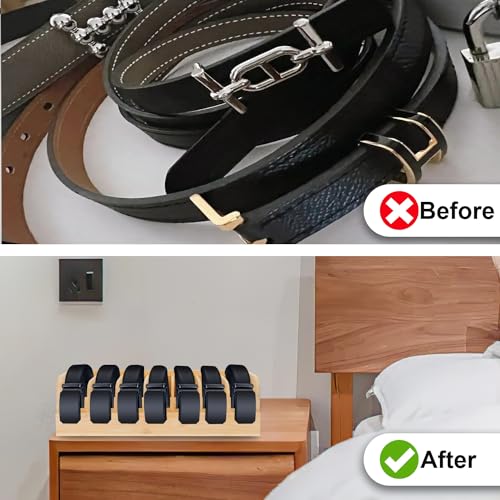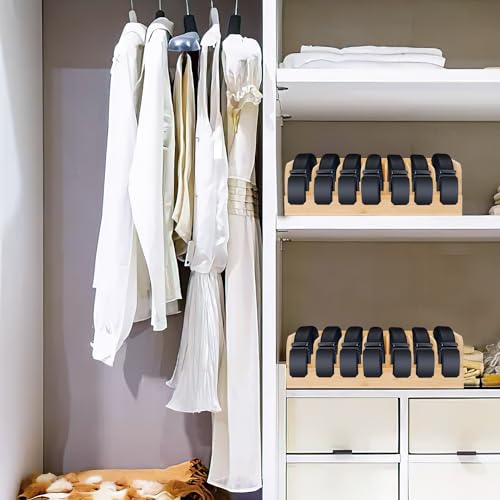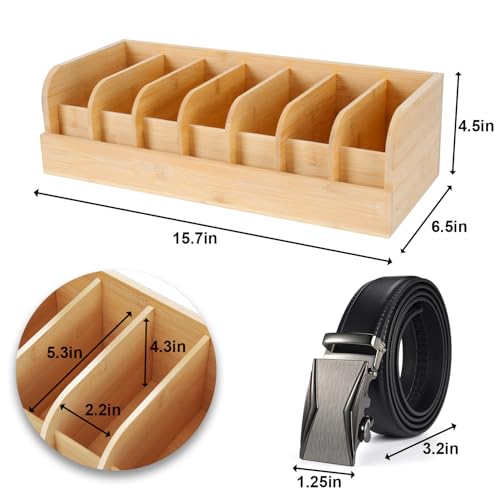 GTI - GTI Belt Organizer,2pcs 7 Compartments Belt Organizer for Closet and Drawer, Bamboo Display Case for Tie and Belt, Belt Storage Organizer for Men Women (Wooden)