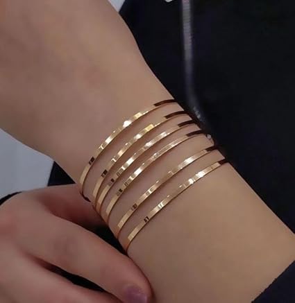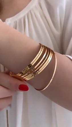 Generic - GUAISH Stainless Steel Shiny Thin Round Bangle Bracelets Set of 6 for Women