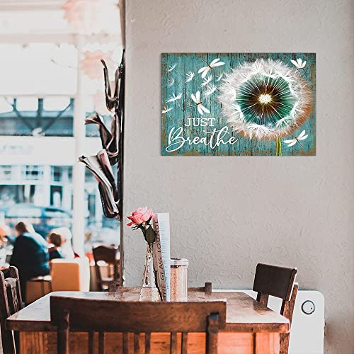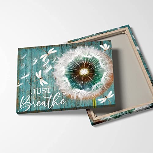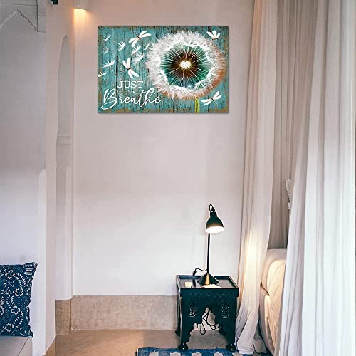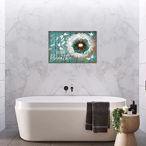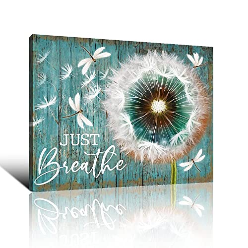 GUBIYU - جوبيو لوحة فنية جدارية مطبوعة من القماش بنمط ريفي من جاست بريث دانديليون ويعسوب، ديكور حائط للحمام وغرفة النوم والمزرعة، لون تركواز، مقاس 36 انش × 24 انش