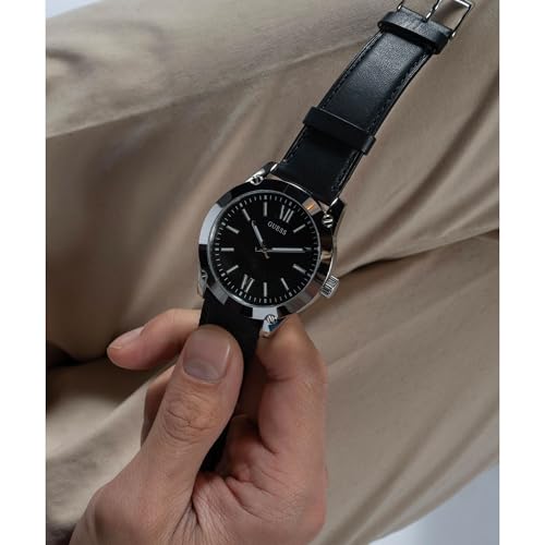 GUESS - GUESS Men's 44mm Watch - Black Strap Black Dial Silver Tone Case