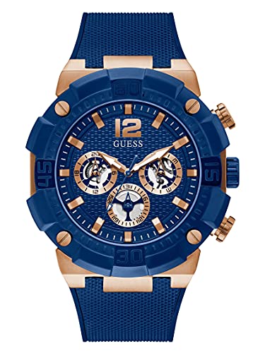 GUESS - GUESS Men's Stainless Steel Quartz Watch with Silicone Strap, Blue, 24 (Model: GW0264G4)
