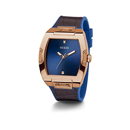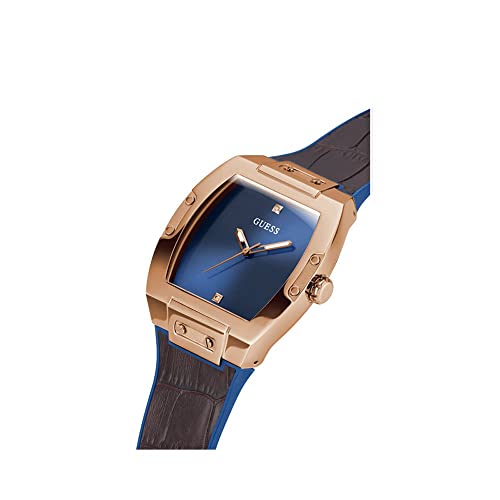 GUESS - ساعة تريند كاجوال تونيو دايموند 43 ملم للرجال من جيس, one، انالوج، بمينا أزرق، بسوار بني