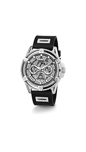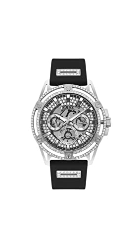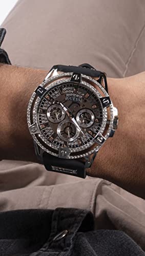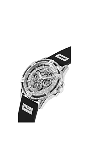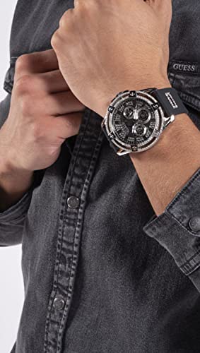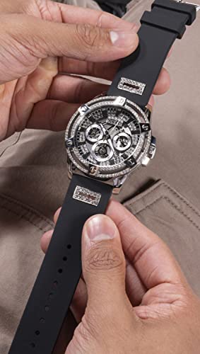 GUESS - GUESS US Men's Cut-Through Silver-Tone and Black Silicone Multifunction Watch