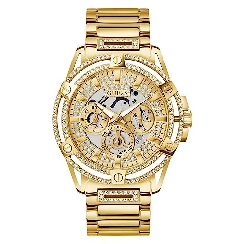 GUESS - GUESS US Men's Gold-Tone Rhinestone Cut-Through Watch