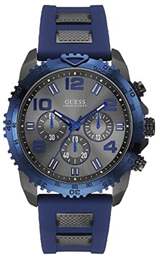 GUESS - GUESS W0599G2 Men's Velocity Stainless Steel Case & Silicone/Rubber Strap Black & Blue,Screw Crown