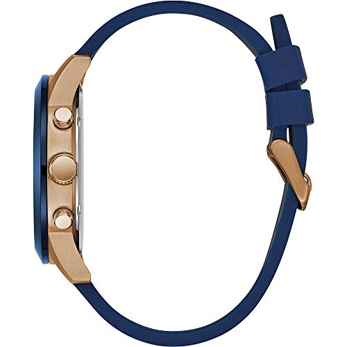 GUESS - ساعة كاجوال بتصميم سيليكون وانالوج للرجال من جيس W1055G2 - لون فضي كحلي، انالوج بعقارب