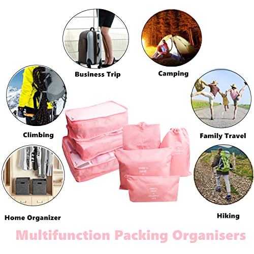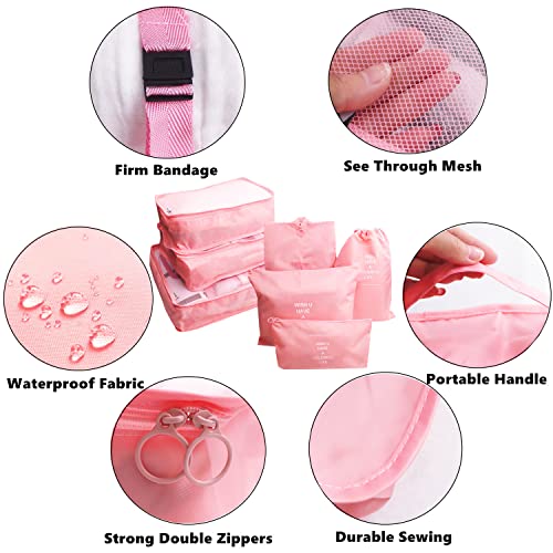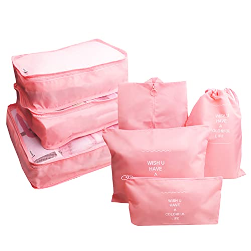GUIFIER - 7 Pieces Travel Packing Cubes Compression Pouches, Storage Packing Organizers Laundry Bags Set, Travel Luggage Organizer Packing Bags for Travel Clothes Luggage Suitcase Organizers (Pink)