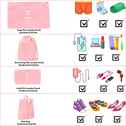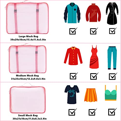 - 🎀 Value Set: You will get 7 pcs set travel packing cubes,they are in different sizes of 3 mesh packing cubes, 3 laundry pouches and 1 shoe bag, Allows you to easily store and makes it easy to pack and unpack. Satisfy all your different travel needs. Make full use of the space in your luggage.
