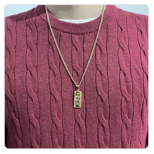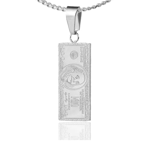 GuLiNiao - قلادة الفاخرة بتصميم ورقة الـ 100 دولار "ثلاثية الأبعاد" - إكسسوار الهيب هوب المعدني المصقول - سلسلة طويلة 60 سم بتفاصيل محفورة بدقة - متوفرة بـ 3 ألوان عصرية.