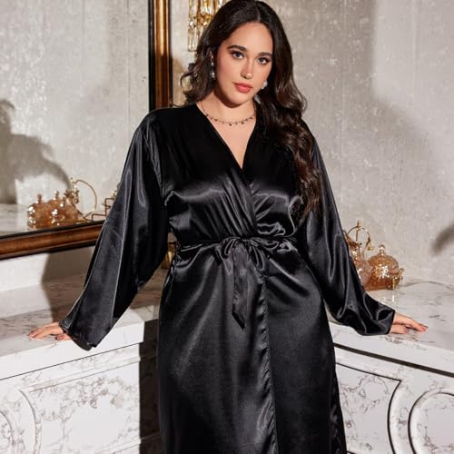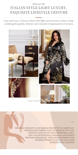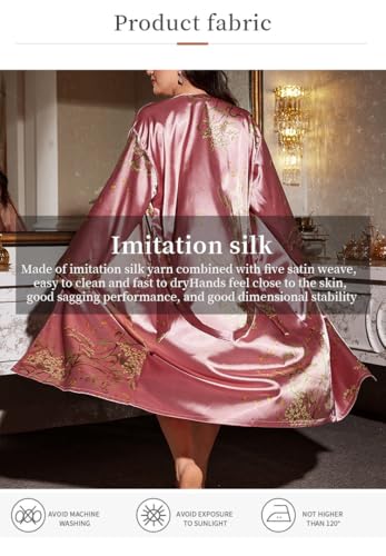 GuLiNiao - Luxury Women's Faux Silk Robe Elegant V-Neck Adjustable Strap for Every Moment, Solid Floral Patterns Perfect for Gifts, Honeymoon, Home Comfort