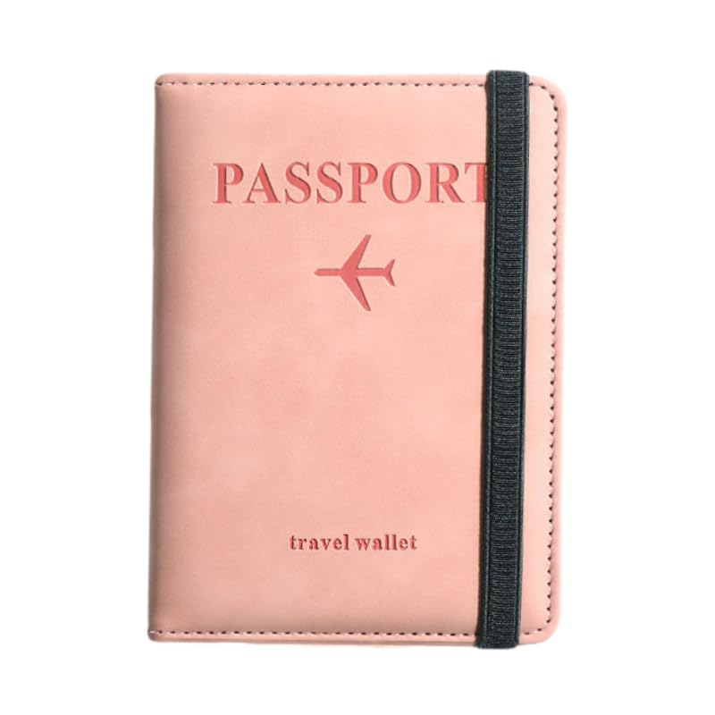 GuLiNiao - RFID Blocking Passport Holder for Travel - Anti-Theft PU Leather Travel Document Organizer with Map Design, Magnetic Closure, Card Slots (Elastic, Pink-E)