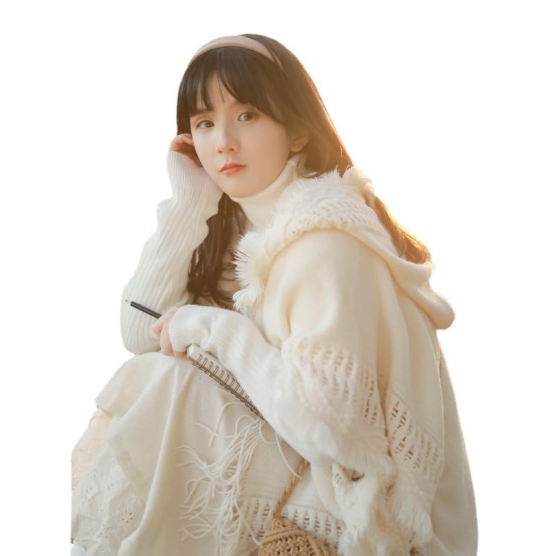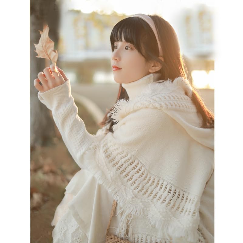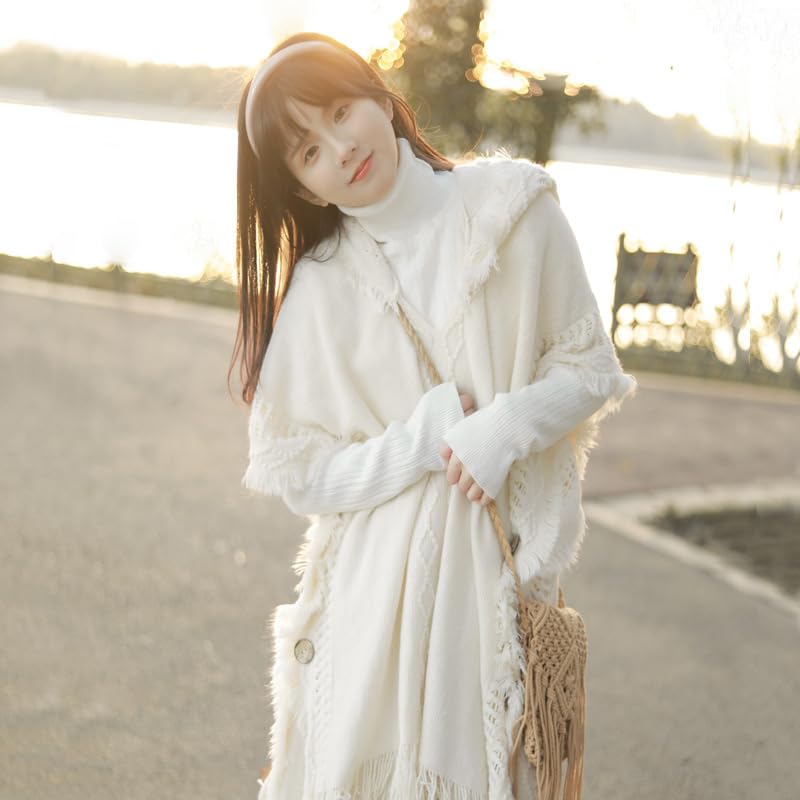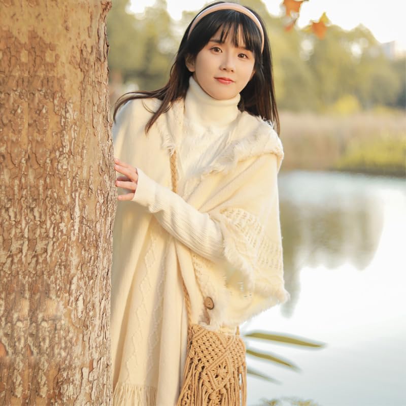 GuLiNiao - Women's Winter Luxury Faux Cashmere Pashmina Scarf Long Soft Tassel Shawl Poncho Double Sided Letter H Poncho Perfect Gift for Fall Winter