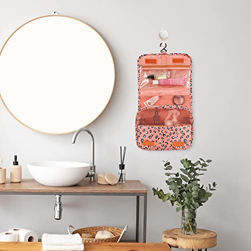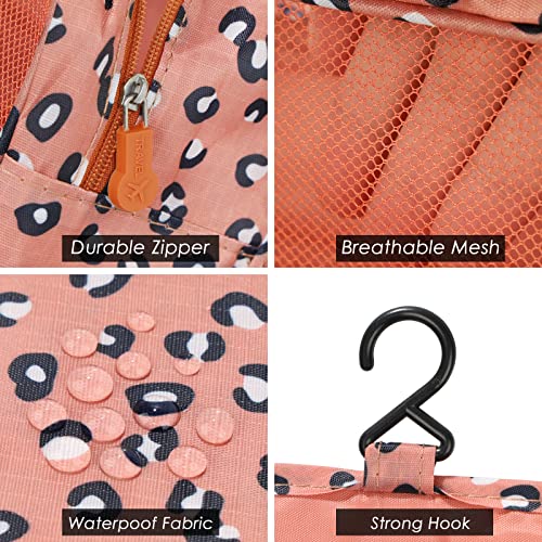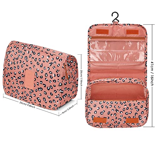 Gunolye - Travel Toiletry Bag,Folding Travel Wash Bag,Portable Comestic Organiser,Waterproof Hanging Organizer Bag,Travel Makeup Bag for Women and Girls, Leopard