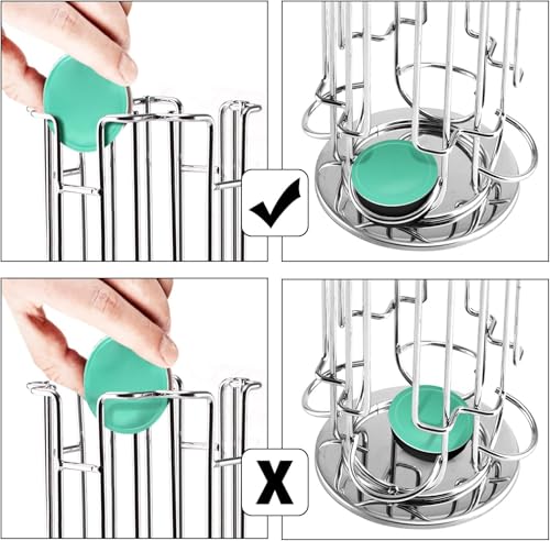- دوران 360 درجة: حامل الكبسولات لدينا يمكن تدويره 360 درجة بسلاسة وهدوء. فقط قم بوضع الكبسولات من الأعلى. يمكن الوصول إلى الكبسولات بسهولة من الأسفل، مما يلغي الحاجة إلى فتح علبة الكبسولات، مما يجعله مريحًا للغاية.
