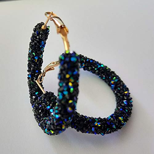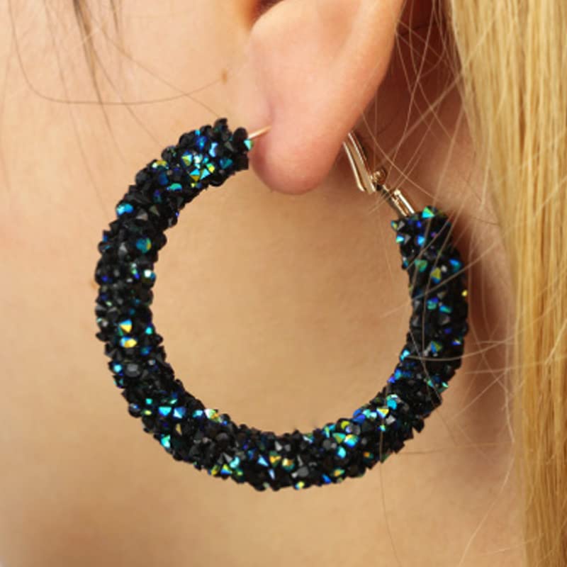 GUOXIAOMEI - اقراط حلقية دائرية لامعة بتصميم بوهيمي لامع مرصع باحجار الراين متدلية ملفوفة للنساء والفتيات كريستال متعدد الألوان