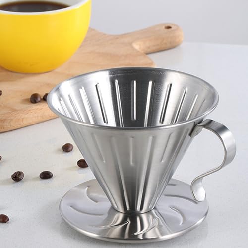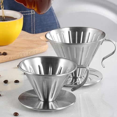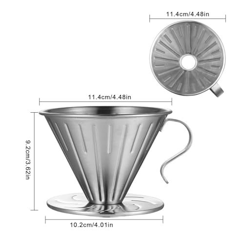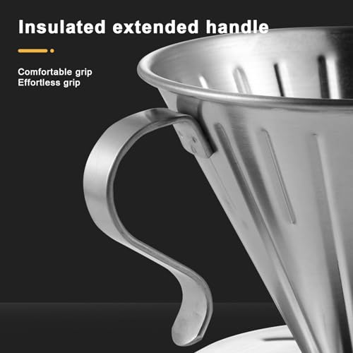 GVRGO - جي في ار او منقط صب اوفر V60 - مخروط فلتر بطيء من الستانلس ستيل قابل لاعادة الاستخدام للسفر والتخييم والمكتب والمنزل وماكينة تحضير القهوة هدية XL 1-4 اكواب
