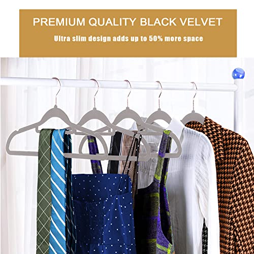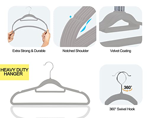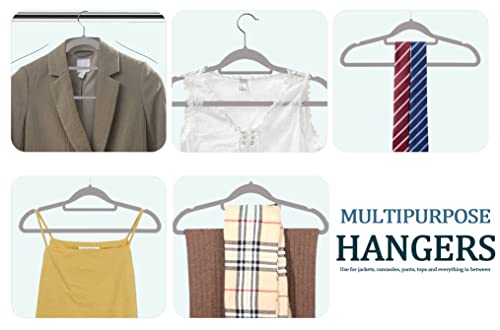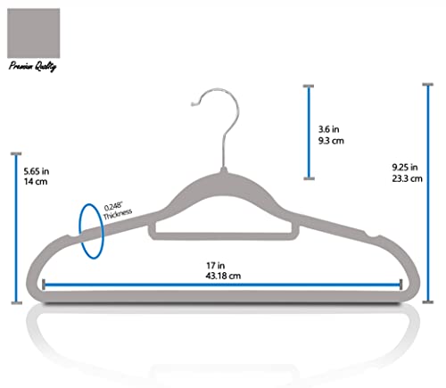 GVTECH - شماعات قطيفة فاخرة غير قابلة للانزلاق وشديدة التحمل (45 سم) مع قضيب ربط وخطافات دوارة 360 درجة متينة لحمل البلوفرات والجاكيتات والسويت شيرتات والبدل من جي في تيك - [لون رمادي، عبوة من 50 قطعة]