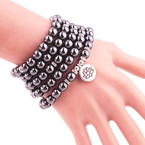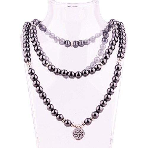 GVUSMIL - GVUSMIL 8mm 108 Mala Beads Wrap Bracelet Necklace for Yoga Charm Bracelet Natural Gemstone Jewelry for Women Men, Gemstone heamatite beads 108 Glass- multi