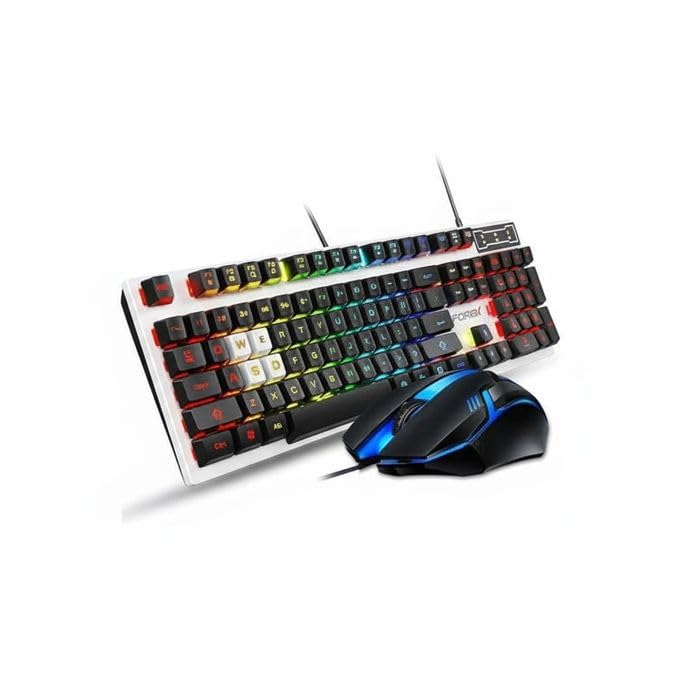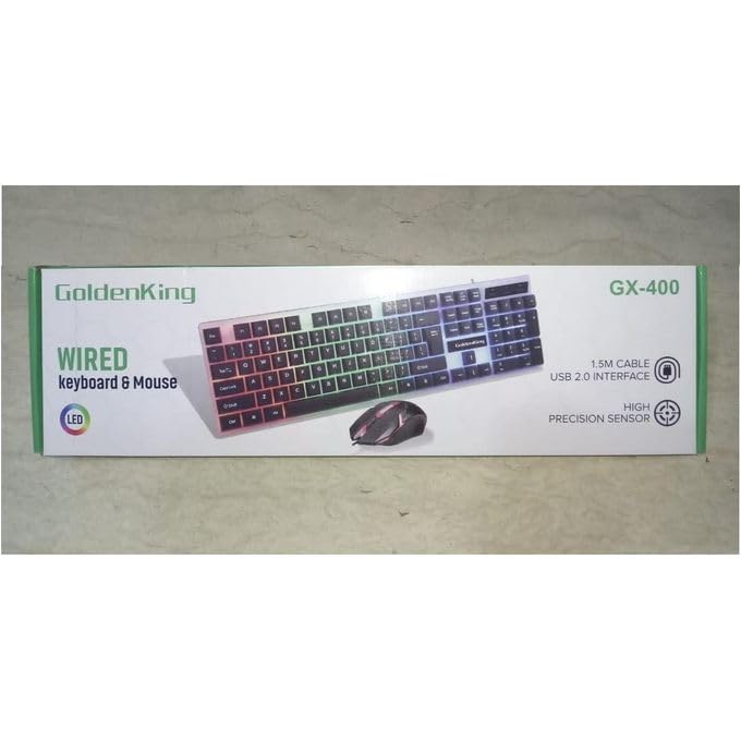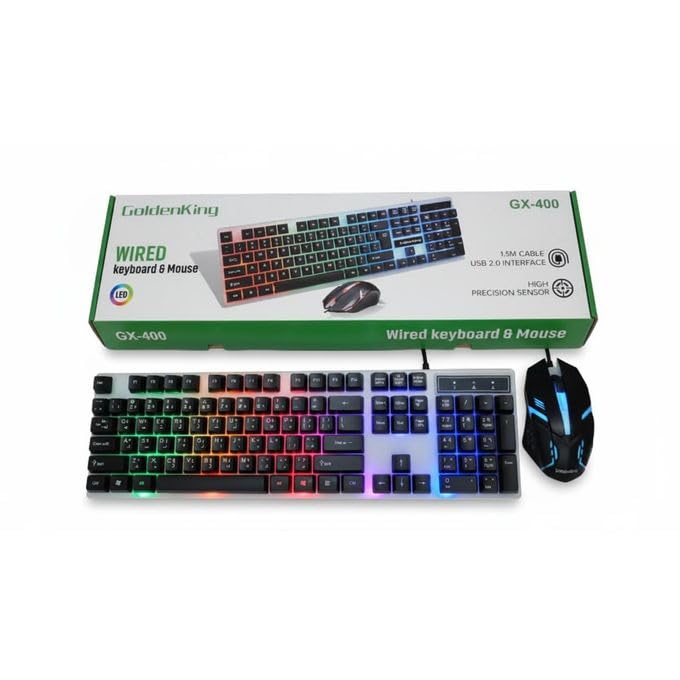 Generic - لوحة مفاتيح وماوس للألعاب سلكية بمنفذ USB مع إضاءة RGB وأزرار مرنة، طراز GX-400