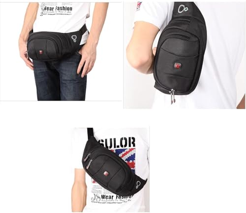 Smart Stuff - شنطة للخصر جيم جو برو، شنطة كتف خفيفة ومدمجة سعة 5 لتر مقاومة للماء والخدش جيوب متعددة ومنظم ومناسبة للجيم وتمارين اللياقة البدنية ومستلزمات التمرين، أسود