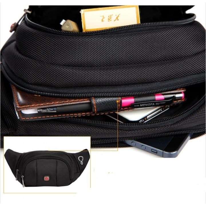 - 3️⃣ 📂 جيوب رئيسية ثلاثية: تتميز بـ 3 أقسام رئيسية واسعة بسوستة (24×16×8 سم) للحفاظ على الموبايل والمحفظة والمفاتيح ونظارات الشمس منظمة تمامًا وسهلة الوصول.