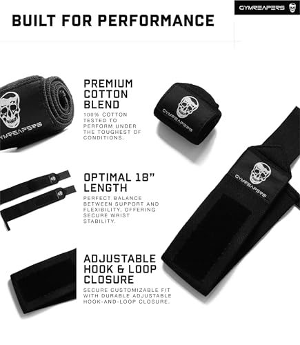 Gymreapers - Gymreapers Weightlifting Wrist Wraps (Competition Grade) 18" Professional Quality Wrist Support with Heavy Duty Thumb Loop - Best Wrap for Powerlifting, Strength Training, Bodybuilding