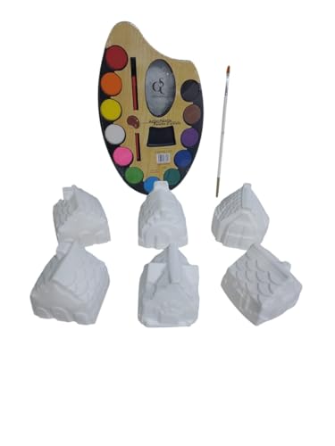 Generic - Gypsum Shapes for Coloring (6 Houses) +12-Color Watercolor Palette + Free Brush ; Coloring Activity Combines Creative Play and Developing Learning Skills .