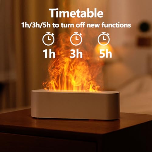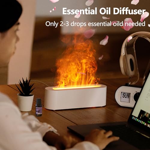 Gzvxuny - فواحة زيوت عطرية بتصميم لهب من Gzvxuny، ذات 7 أضواء ملونة مطورة للعلاج بالروائح العلاجية، فواحة زيوت عطرية، بإيقاف تلقائي عند نفاذ الماء للمنزل والمكتب وغرفة النوم، 150 مل (أبيض)