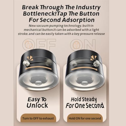 - يتميز حامل الهاتف بقاعدة الشفط بتقنية شفط الفراغ المتقدمة، مما يسمح بتثبيت حامل الهاتف المغناطيسي بأمان في أي مكان، مما يحافظ على يديك حرتين. بفضل الزر الميكانيكي المدمج، يضمن نظام الشفط المبتكر تثبيت حامل الهاتف المغناطيسي القابل للتعديل في ثوانٍ مع انزلاق بسيط.
