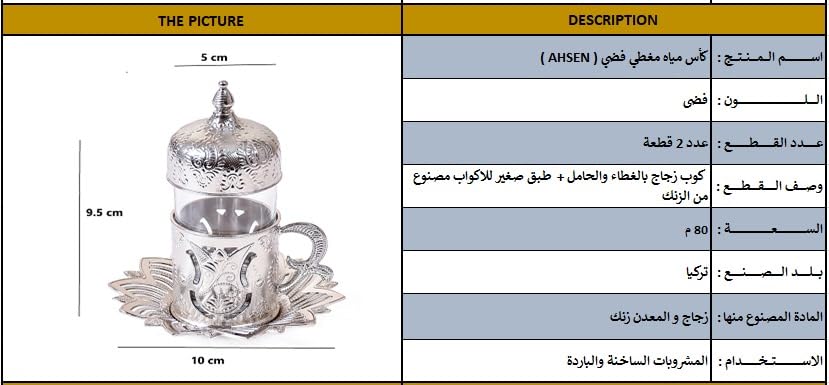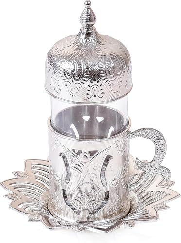 Home and Kitchen Art - H&k Art 2 Piece Silver Covered Tea Cup (Glass Cup with Lid & Stand + Saucer) 80ml