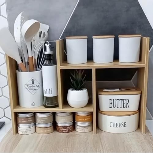 - Versatile Design: Wooden H-shaped organizer perfect for organizing makeup and perfume bottles in bathroom or kitchen spice jars