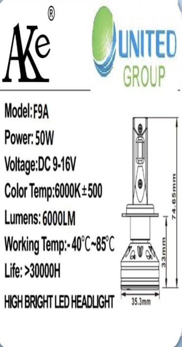 - 50W power: provides strong lighting and stable performance of the vehicle. 6000lm Brightness: clear view in dark ways and difficult conditions. 6000K ±500: Pure white light improves the road details. Universal H1 Design: Compatible with most cars that use H1.9V-16V operating volts: suitable for different cars. High heat capacity: work efficiently between -40℃ up to +85℃. Long Life >30000 Hours: Provides long-term use without requiring repeated changes. Compact design with efficient cooling: keeps light steady and prevent overheating. HIGH QUALITY LIGHTING: HIGH BRIGHT LED HEADLIGHT BY AKE