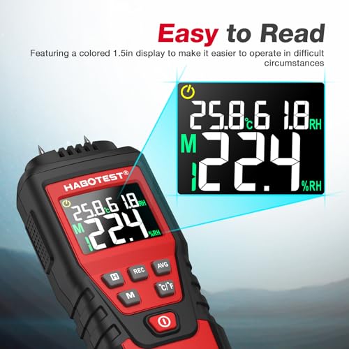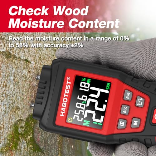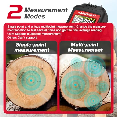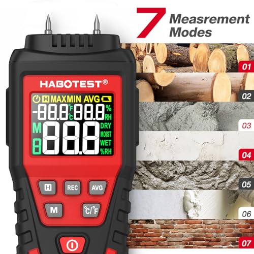 HABOTEST - HABOTEST Wood Moisture Meter Pin Type, Moisture Meters for Drywall, 2 Modes & 7 Calibration, Moisture Detector Firewood Woodworking Plaster Concrete Building