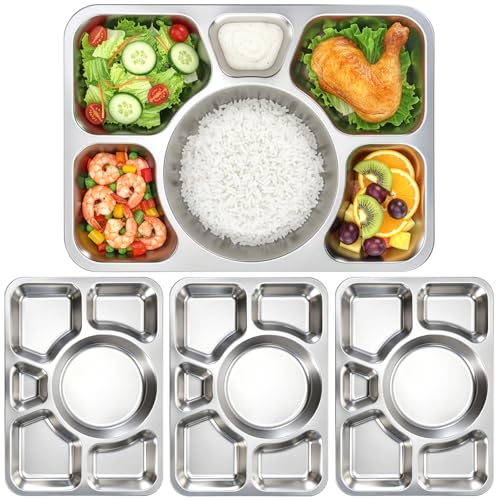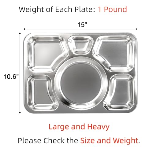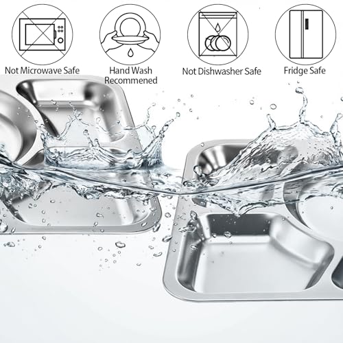 - تتضمن 4 قطع من الأطباق المصنوعة من الستانلس ستيل، مقاس 15 انش طول × 10.6 انش عرض × 0.8 انش ارتفاع. كطبق غداء مناسب للأطفال في المدرسة والبالغين الذين يتبعون نظامًا غذائيًا في المنزل أو العمل.