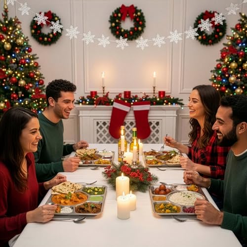 Hacaroa - صينية طعام مقسمة من الستانلس ستيل من هاكاروا، مقاس 15×10.6 بوصة، 6 اقسام، مناسبة للاطفال والكبار والرحلات (4 قطع)