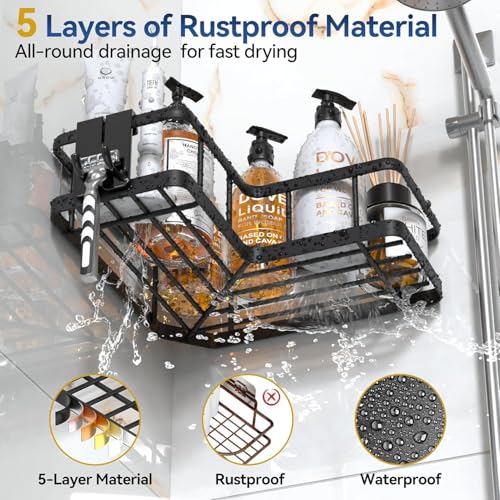 Generic - رف دش لاصق من هاديدو | 5 عبوات | ارفف حمام ستانلس ستيل مقاومة للصدا | منظم تخزين بدون ثقب للاستحمام والمنزل | سعة كبيرة، رف حمام موفر للمساحة