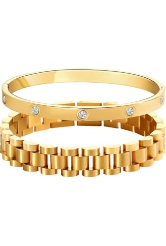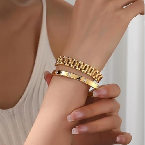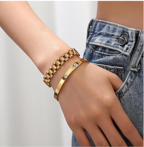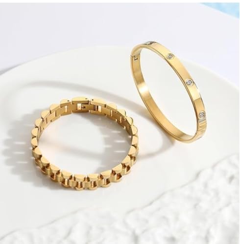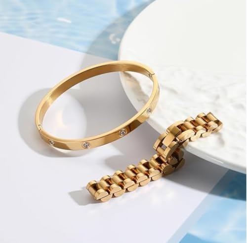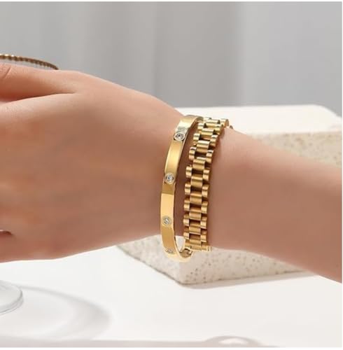 Generic - Hagat Banat Store Gold Bracelets for Women Gold Stackable Bracelets for Women 18K Gold Plated Stainless Steel Cubic Zirconia Karter Bracelets (Gold Watch Rolx Bracelets & Karter Bracelets)